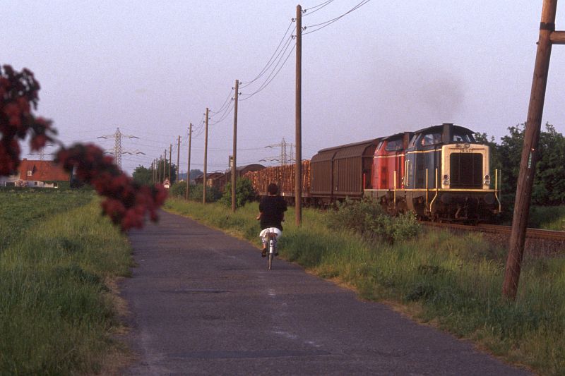 63724, hier bei Dibbesdorf am 13.05.92. Die Zug- länge (rechts sichtbar) verdeutlicht das Güteraufkommen