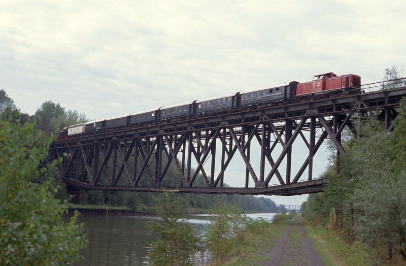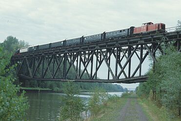 ersten Tagen des Einsatzes im Fahrplanjahr 1989/90: E 6631 Uelzen - Braunschweig an den Schunterbrücken bei Querum. |