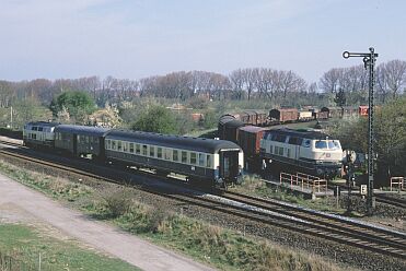 am Sonntagvormittag(!): Dg 44496 aus Oebisfelde muß E 6624 nach Uelzen an der Nordeinfahrt von