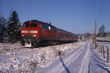 Tag des Jahres 2002 nähert sich RB 34477 Uelzen - Braunschweig bei schönstem Winterwetter der Einfahrt
