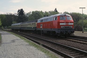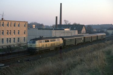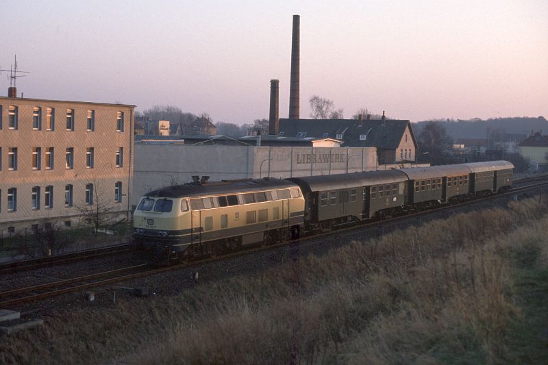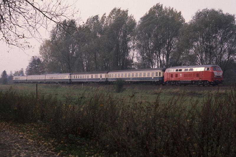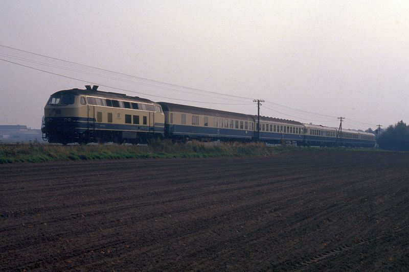 Ära der blau-beigen Schnellzugwagen schon bald zu Ende. 218 124 (frisch hauptuntersucht) mit RB 6624 Braun- schweig