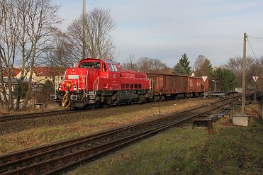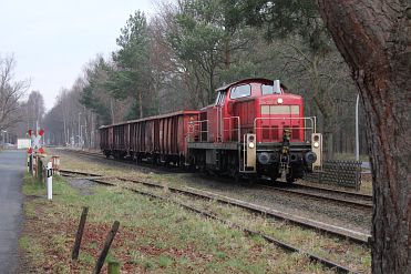 BR 294/261/265 (Güterverkehr Braunschweig - Knesebeck)Knesebeck ist neben Wenden-Bechtsbüttel die letzte Betriebsstelle mit Güterverkehr auf der Strecke Braunschweig - Uelzen. Holzverladung sowie der Werksanschluss der Fa. Butting sorgten bzw. sorgen hier für Frachtaufkommen, welches von 1992 bis Ende 2013 von den Osthannoverschen Eisenbahnen (OHE) über Wittingen abgewickelt wurde (OHE-Strecke Celle - Wittingen). Im Zuge der Umstrukturierung des Güterverkehrs auf dem OHE-Netz wird Knesebeck ab Januar 2014 von der DB samstags von Braunschweig aus angefahren. |