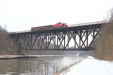Passend zum Anlass präsentierte sich das Wetter am 11.01.14: Premierenfahrt EK 53912 Knesebeck - Braunschweig bei Bechtsbüttel. | Der milde Winter 2013/14 bot nur an wenigen Tagen eine Schneedecke: EK 53912 überquert den Mittellandkanal bei Bechtsbüttel am 01.02.14. | |
