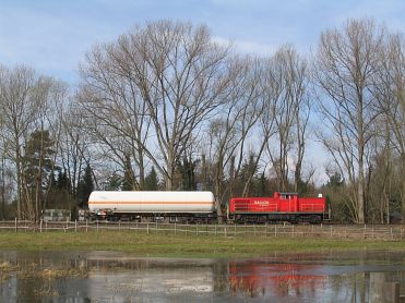 erkennen ist die Dammlage der Strecke in der Wabeniederung (FZ 53931 am