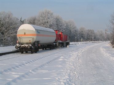den Kesselwagen im Anschluß Boie bereitgestellt und wartet mit