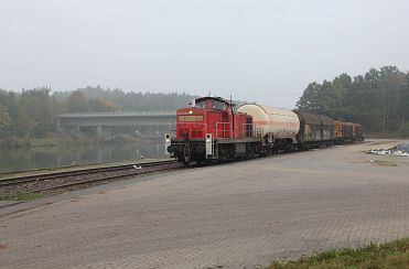 Im Wittinger Hafen stellte 294955 am 02.10.14 EK 53912 zusammen, links der Elbe-Seitenkanal. 4 beladene und ein Leerwagen bildeten an diesem Tag den Güterzug Richtung Braunschweig.