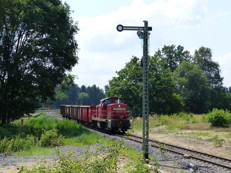 Am 15.07.14 konnte EK 53911 Braunschweig Rbf - Wittingen Hafen bereits über eine Stunde vor seiner planmäßgen Fahrzeit in Wenden-Bechtsbüttel angetroffen werden. An diesem Tag wurde der dortige Anschluss Boie übrigens von einen separaten Übergabezug rund 2 Stunden später bedient! Gegen 7.42 kam es zur Begegnung mit RB 14953 Wittingen - Braunschweig, anschließend drückte der Güterzug ins Hauptgleis zurück und setzte seine Fahrt Richtung Norden fort. In Gifhorn Stadt kam es dann zur Begegnung mit RB 14945 um 8.18. Die weitgehend zurückgebauten Bahnhöfe auf der Strecke Braunschweig - Uelzen erschweren einen flexiblen Betrieb erheblich, lediglich in Gifhorn Stadt, Wahrenholz und Wittingen sind noch signalisierte Zugkreuzungen möglich.