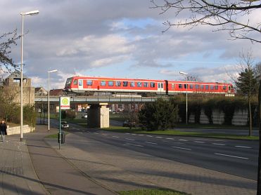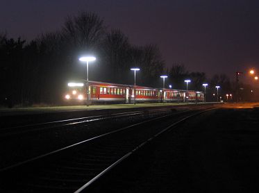 Wenig Verkehr auf der Berliner Straße: Am 14.03.08 fährt RB 24767 planmäßig um 16.49 in Gliesmarode ein. |
