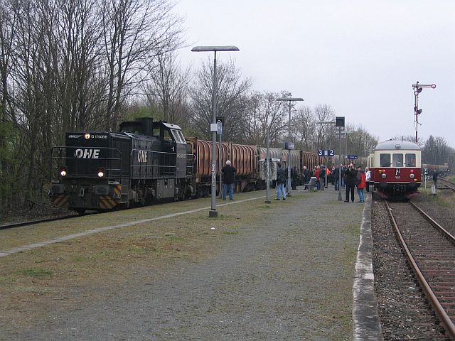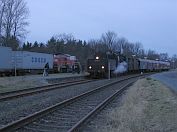 Dieseltriebwagen (DTW) 1 der Lappwaldbahn trifft
