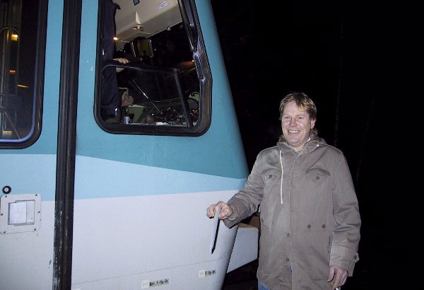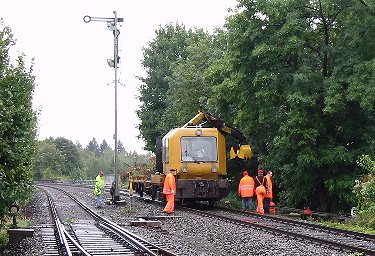 Gleisstopfarbeiten am Abend des 21.07.01: Nach Durchfahrt