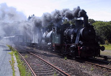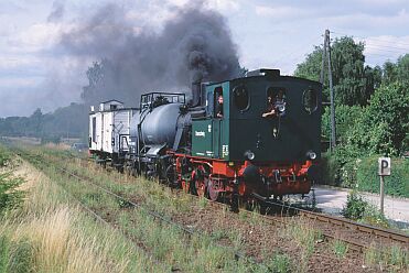 nach Wittingen überführt. Da der VBV z.Z. über keine betriebsfähige Diesellok verfügt, kam die Dampflok zum Einsatz. Links der