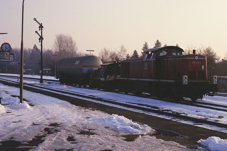 Kuriose Zuggarnitur mit dem enorm langen Laufweg Braunschweig-Gliesmarode - Braunschweig-Nordkurve (ca. 1km): In den 80er Jahren fuhren sowohl die Übergabe zum Nordbahnhof als auch die Lok zum Hafen gegen 16.30 Richtung Nordkurve; "kreative" Fahrdienstleiter faßten diese beiden Fahrten gelegentlich zu Einer zusammen! |