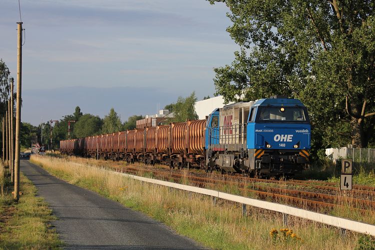der leere Müllzug am frühen Morgen. Lok 1460 der OHE hat mit