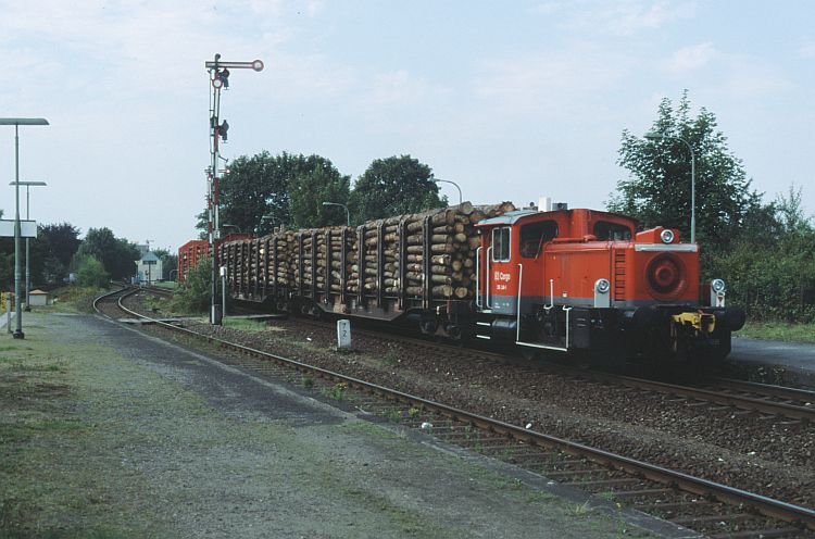 Im Sommer 1998 wurde letztmalig die Ladestraße in Braunschweig Ost zur Holzverladung genutzt, 335 248 durchfährt Gliesmarode am 21.07.98 mit CB 67004 Braunschweig Ost - Braunschweig Rbf. Der Güterverkehr im Ostbahnhof hielt sich noch bis Ende 2000, beschränkte sich aber zum Schluß auf zwei bzw. ab Sommer 1999 nur noch einen Privatanschließer.