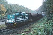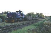 Langschienen, RCB-Lok mit Bauzug durchfährt