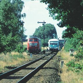 "Weddeler Schleife". Heute fahren am ehemaligen Empfangsgebäude ICE mit 160 km/h