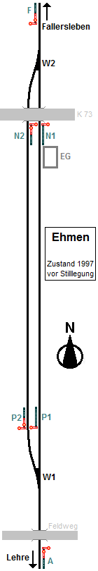 wurde Ehmen als Reisezughalt geschlossen, der Bahnhof hatte aber weiterhin als Kreuzungsmöglichkeit Bedeutung. An