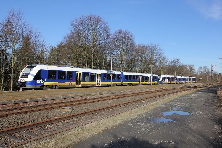 Inzwischen historisch: erixx-Doppeleinheit in Gliesmarode vor der Modernisierung der Bahnsteiganlagen.