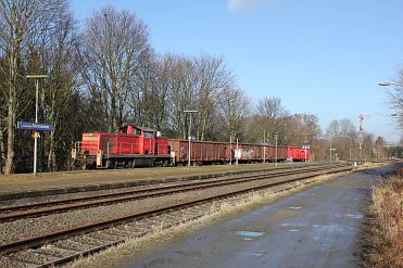 Auf der Strecke Braunschweig - Uelzen gibt es nach einer Fahrplanumstellung im Juli 2016 Güterzüge an 5 Wochentagen. Montags und mittwochs verkehrt ein Zugpaar bis Wittingen Hafen, dienstags und donnerstags wird der Hafen in Uelzen bedient. Samstags schließlich wird (seit Anfang 2014 unverändert) Knesebeck angefahren. EK 54257 nach Wittingen Hafen macht sich gegen 13.40 auf die rund 70 Kilometer lange Reise (26.04.17). | Samstags ist Wagenaustausch bei der Fa. Butting in Knesebeck angesagt, das Zugpaar heisst aktuell EK 54279/54273. Aufgrund der planmäßigen Kreuzungen mit Personenzügen in Gifhorn Stadt sind die Güterzüge auf der Uelzener Strecke meist pünktlich unterwegs, so auch EK 53920 Knesebeck - Braunschweig Rbf am 28.02.15 in Gliesmarode. | |