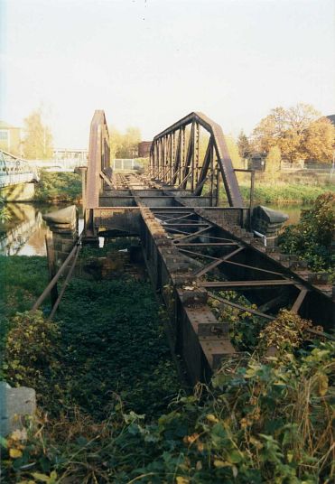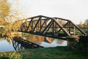 ![]() Die Fachwerkbrücke über die Oker im Zuge der Braunschweiger Ringbahn war 1990 noch vorhanden, das Gleis dagegen schon seit Jahren rückgebaut. Heute stehen hier nur noch die ge- mauerten Pfeiler (vergl. auch Bild des Monats August 2003) |