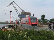 Der Pendelzug für die Hafenrundfahrt auf Schienen steht bereit... |