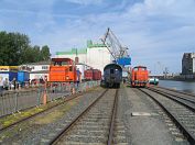 3 Hafenloks, eine VW-Lok: VBV V45, Lok 5 und 6 der Hafenbetriebsgesell- schaft sowie VBV Lok "Braun- schweig", ehemals "Hafen 2" |