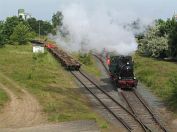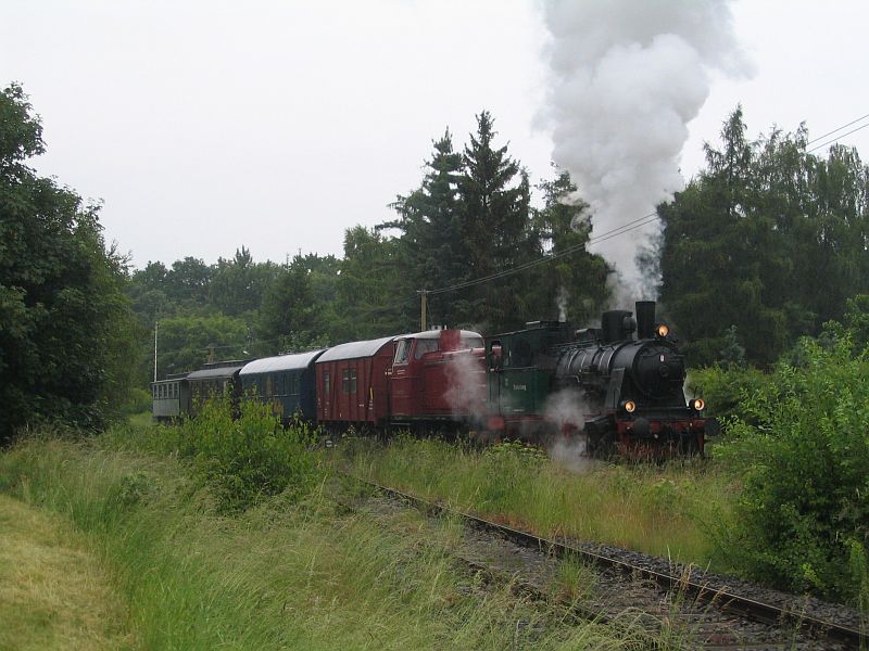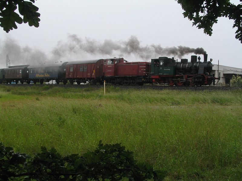 Heimfahrt im Regen: Der VBV-Zug kurz vor der Abzweigstelle Hafen |