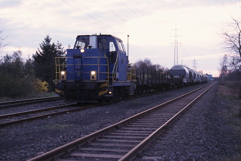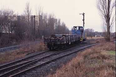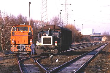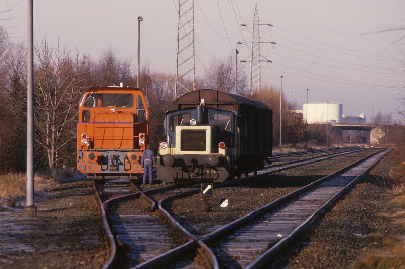 Übergabebahnhof Veltenhof neben Lok 6 der Hafenbahn am 15.12.88.