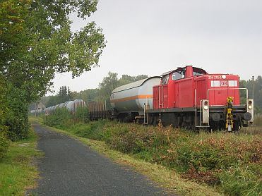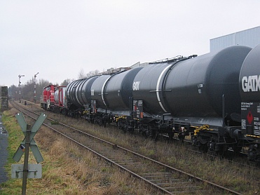 sowei einen Leerzug Ölwagen am Haken (auf- genommen