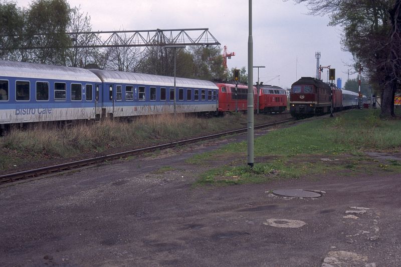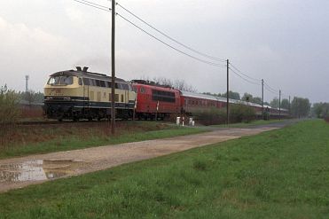 selten" waren Begegnungen zweier IR-Züge in Braun- schweig Ost: IR 2341 Hoofdorp-Berlin (links) muß auf IR