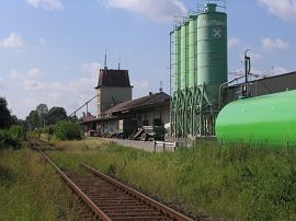 östlich angrenzende Zuckerfabrik mit Gleisanschluß. Nach dem Gleisrückbau Ende