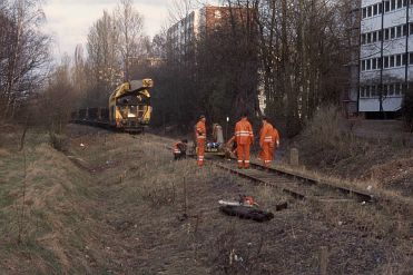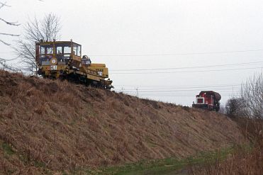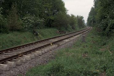 Schienenfahrzeuge seit fast 6 Jahren? Am 26.02.98 wird der Gleiskörper auf dem Bahndamm durch die