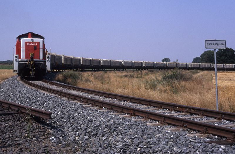 Müllzüge (Watenbüttel - BS Rbf - Helmstedt - Buschhaus)Mitte November 1998 begann ein völlig neues Kapitel Güterverkehr auf den Gliesmaroder Strecken: Der Braunschweiger Müll wurde nicht mehr deponiert, sondern in einem werktäglichen Ganzzug zur neuen Verbrennungsanlage Buschhaus bei Helmstedt gefahren. Bis November 2003 beförderte DB Cargo die Züge mit der BR 294/295. |