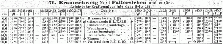 Fahrplan der BLE-"Nordstrecke" vom Sommer 1938.