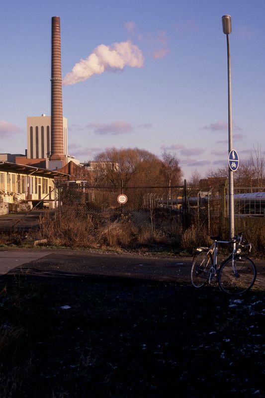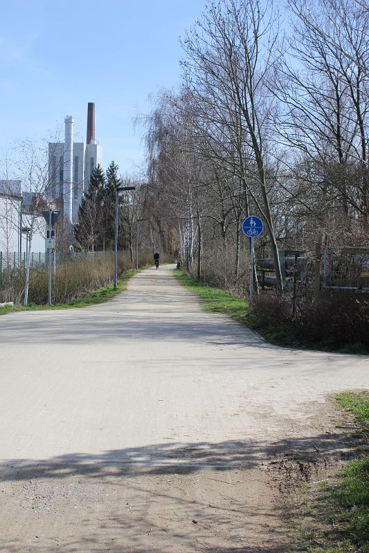 Radwege-Kreuzung, man beachte auch die baulichen Veränderungen am