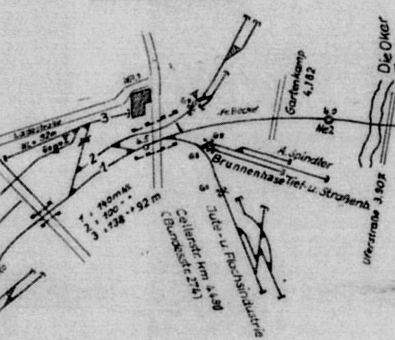 vorige Seite Übersicht nächste Seite ![]() Anschlussgleise im Bereich Celler Straße -Oker 1975, klick auf Karte für Vergrößerung |