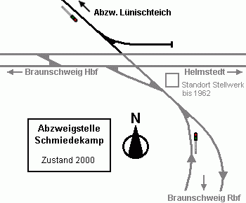 bis 1962, nach dem Anschluss der Abzweigstelle an das DR-Stellwerk