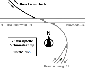 der Abzweigstelle Schmiedekamp kreuzt die nur von Güterzügen
