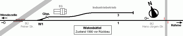 zu einem Industrieunternehmen bis 1992, anschließend wurden Weiche und Ladegleis abgebaut.