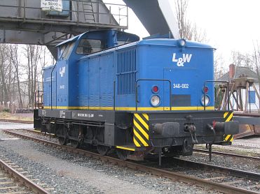 dem 07.02.11 rangiert die 346-002 der Fa. Laeger&Wöstenhöfer