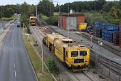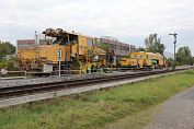 das Richten und Stopfen der neu geschotterten Gleise am 20.09., die Fa.