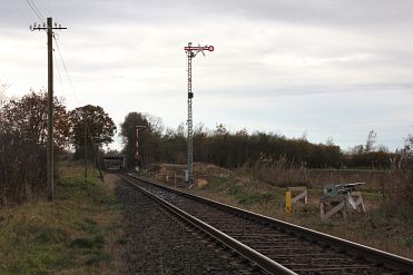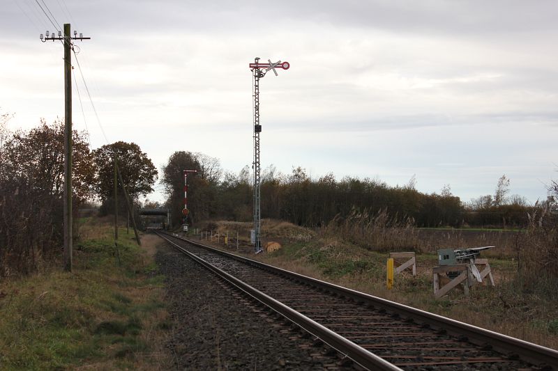 Bahnhof Wenden-Bechtsbüttel: Einfahrsignal "F" wird versetzt (20.11.16): Da das vorhandene Einfahrsignal aus Richtung Meine bisher offenbar zu dicht an der ersten Weiche (Weiche 8, siehe Bahnhofsseite Wenden-Bechtsbüttel)