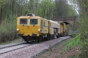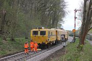 Abzweigstelle Lünischteich. Die Stopfmaschine bei der Arbeit am