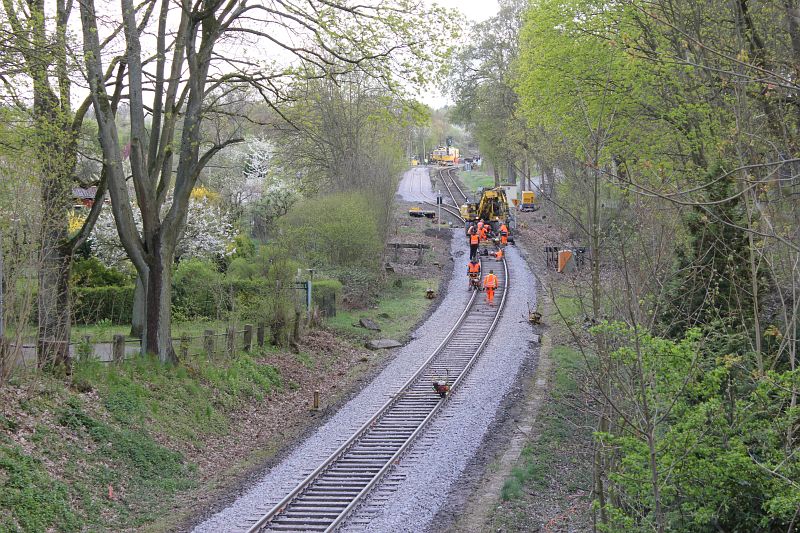 Frisch geschottertes (noch altes) Gleis am Nachmittag des 10.04., Blick