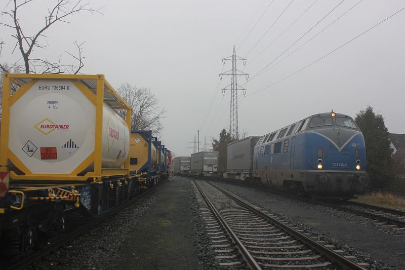 Winter 2017/2018 wird der Trailerzug von 221 136 (EGP) im Abschnitt