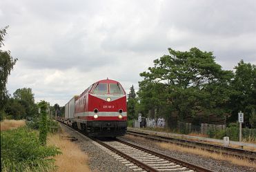 Aufgrund der Zugmasse (beladene Container Richtung Hafen) ist der