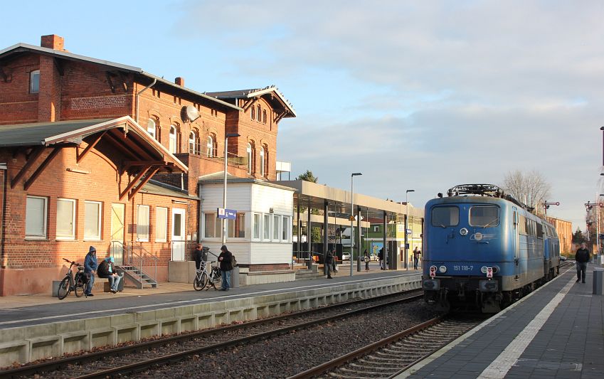 Wittenberge am 23.12.19 auf der Kursbuchstrecke 115 unterwegs, links am