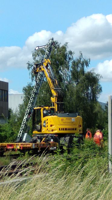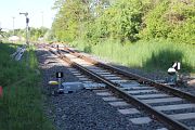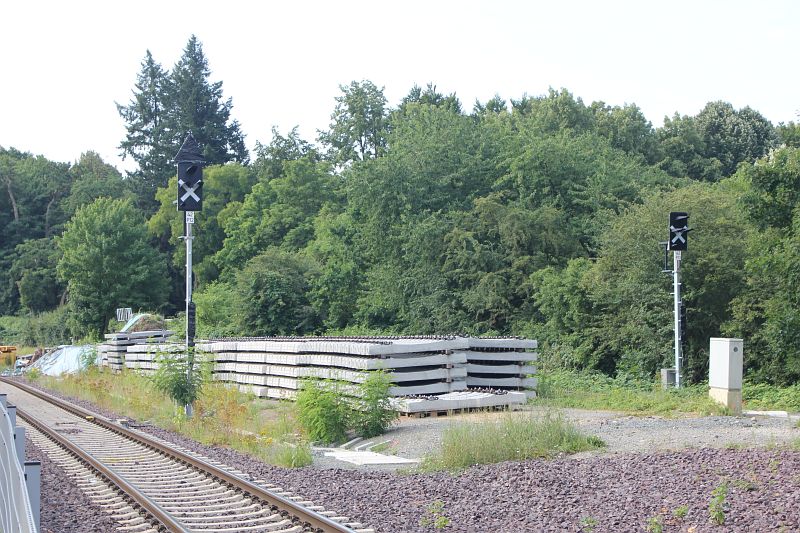 lagernden Betonschwellen sollen noch in Gleis 3 eingebaut werden. Die