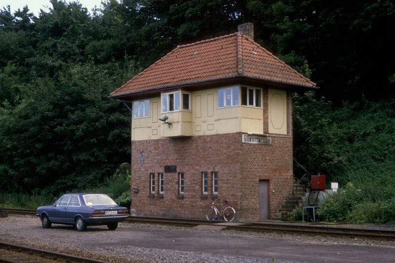 Das Empfangsgebäude mit Stellwerk Gnf (Gliesmarode Nord Fahrdienstleiter) wurde mehrfach umgebaut und präsentiert sich heute in diesem Zustand. Im Bereich der vorderen 4 Fenster befindet sich der Fahrdienstleiterraum mit Stellwerk, dahinter die ehem. Fahrkartenausgabe und ganz links der Eingang zum ehem. Warteraum. | Stellwerk Gs (Gliesmarode Süd) liegt am Hang des Nußberges und ist vom Stil her ein typischer Stellwerksbau aus den 20er/ 30er Jahren, daher steht es auch seit einiger Zeit unter Denk- malsschutz. Bis auf die in der Höhe verkleinerten Fenster dürfte es äußerlich kaum verändert worden sein. | |